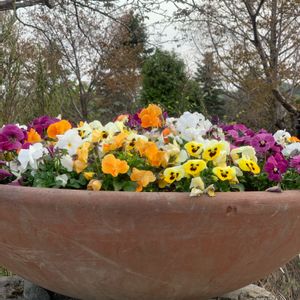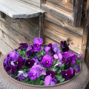 ようやくパンジー まだ肌寒い北国の春です。