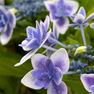 いつかの母の日に贈った紫陽花❖ 昨年実家から持ってきて、我が家の庭に植えてから初めて咲きました♪ 𓂃◌𓈒𓐍 ❉ 紫陽花 アジサイ ハイドランジア ① マジカルレボリューション ② ガクアジサイ コンペイトウ