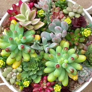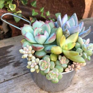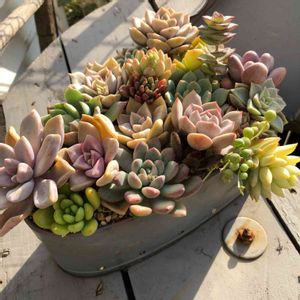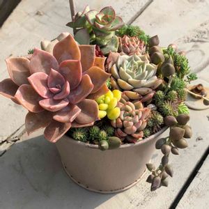 オニマルシェで連れ帰ったnaachanの寄せ植え❣️ 元気でいきいきしてます💕 色とりどりのかわいい子たちがこれからどんな色になっていくのか楽しみです😊