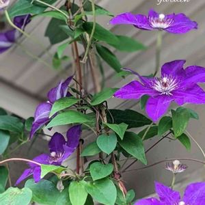 クレマチス・ビエネッタ これから花形が段々と変わっていきます💜 やっと、2方開きの車庫から外へ 摘芯で今年は花数期待できるかな😃♡💜 ⬆2017年〜からの記録はありました📱これから開花です💓