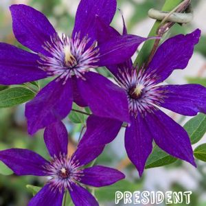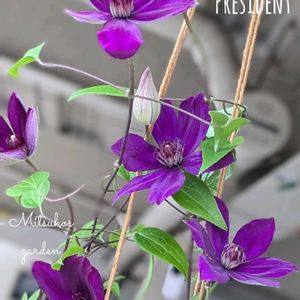 𑁍𓏸𓈒クレマチス*・゚ 『プレジデント💜⋆͛』 時折の強風や 強い☔にも 負けず 麻紐にしっかり 巻き付いている… その底力には 驚きます…💜⋆͛