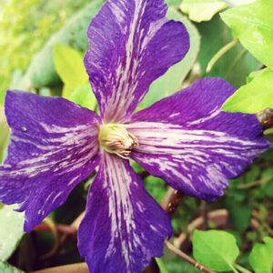 クレマチス インテグリフォリア 雨の合間に、一輪咲いてくれました。💜💛