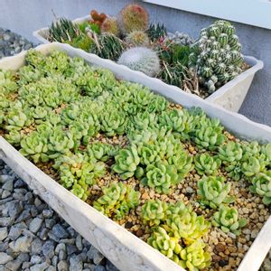 こんばんは😄 今日は朝からシトシトと小雨が降ったり止んだりで🌧️ 予報では最高気温27度だったのに実際の気温は23度でした😃 ようやく秋らしい気温になりました✨ 鉢植えは終わったと思ってたんですが忘れてたのがあって今日植え付けました🤣 ①女雛 かなり小さくなったので4号鉢に鉢下げ🥲 ②キュート 前に植え付けてた頂いたプラ鉢とどうも合わずで鉢替えしました😤 ③ピンククリスタルローズ この4苗、成長点行方不明から子吹きしたお子達ですがバラしたんです。 同じ苗からの子吹きなのにそれぞれ違ってみえる🤔 なんで😂? ④ラウリンゼ綴化 バラしました😝 そのままで育てていこうと思ってたけど、あまりにも単頭が出まくってたから😥 綴化の部分と単頭と分けました😅 綴化は2.5号鉢、単頭は丼にして5号鉢で育てていこうと思います😂 ⑤今日ひたすら抜いて枯れ葉掃除した葉挿しっ子達🤣 塩ビパイプに植え付けてた子達です😳 植えた時にお花の土が多くて。 雨ざらしでは土が腐ってしまって臭かったんです😰 土を変えたくてね😮💨 大きめな子達はレイズドベッドに植え付けて小さい子達はまた塩ビパイプに植え付けようかな😅 塩ビパイプもう1つは小梅を植え付けようと思ってます🎵