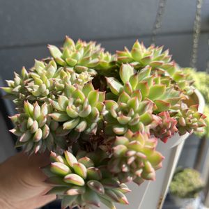 こんばんは😄 今日はカンカン照りなのにお昼に少し雨が降りました😅 朧月、 この夏めちゃくちゃお気に入りの朧月さん🎵 あなた何でこんなに可愛いの🥰 ラストエンペラー、 この子絶対にクライギアナ入ってるよね🤔ショップさんのオリジナル交配苗みたいですが葉の感じから入ってるなって思うけど違うかな〜どうかな~🤔 女雛、 小さくなったけど何とか群生状態は維持できてる🎵 七福神、 めちゃくちゃ小さかったカットしたお子は少し腐ったけど、他の子は何とか頑張ってくれてるわ😅 お水やり激しいから土が減りまくりで今日足しました😝 今日は玄関横の多肉達のお手入れしました👍 腐った葉っぱのカリカリ状態がヤバかった🤣 昨日体調不良で早退してきた主人😩 今日病院で検査したらコロナ😷 3回目だよ😂 今回は高熱は出ず微熱で頭痛と関節がかなり痛いらしい💦 私と娘も多分感染してるだろうな😅 うちはいつも主人が会社でもらってくる😂 大きい会社だから人も多いし仕方ないけど💦 バスと電車乗って出かける用事があるのにキャンセルだわ😅 仕方ないわね🥲
