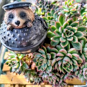 🏷𓈒𓏸︎︎︎︎タヌキ祭りに参加しますᐢ⓿ᴥ⓿ᐢ ①茶釜に入ったタヌキともりもりの女雛₍ᐢ⓿ᴥ⓿ᐢ₎ ②後ろ姿も可愛いc( ᐢ⓿ᴥ⓿) ③タヌキのアップ💕 ④タヌキの鉢ペア👭 ⑤4個目のお花が咲いて5個目ももうすぐ咲きそうです😊