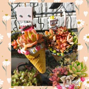 1枚目〜3枚目 🏷毎月15日はいちごの日🍓 🍓のアイスコーン鉢とチョコのアイスコーン鉢の上にゆき。さんに頂いたいちごみるくロボたん🤖💕💕 今日はセーター着て多肉事していたら、汗かいて暑かったよ〜( - -💦 ) アイスコーン鉢の多肉が紅葉していて可愛いかった〜🫶️💗💕 右下は夏に撮ったpic 緑💚だったのがオレンジ🧡に☺️👍🏻 2枚目 雲仙花子さんに頂いた女雛ちゃんもほんのり紅葉してきたよ〜☺️💕 3枚目 ピンクパンサーさんのケーキ🎂鉢に植えているコーネリアスは徒長してこのまんま💦 チョンパ✂️⸒⸒した方がいいかなぁ…迷い中🙄💭 4枚目 🏷毎月15日はインコの日 月の雫さんに頂いた秋麗の上に集まって来たよ〜!(๏‚θ‚๏)(•‚θ‚•)(・ ν ・)🎶