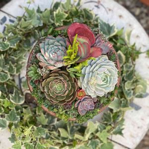 庭の多肉で寄せ植えを作りました😊 娘が最近仲良くなった同級生が なんと多肉が好きらしいのです😁 その子から、 手作りブレスレットをもらったので、 何かお返ししたいということで、 庭から選んできてもらい 寄せ植えにしてみました😊 喜んでもらえるといいな😊