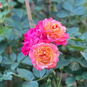 おはようございます😃雨が降るので急いで撮って来ました♪ 和バラあおいちゃん 毎年花つきの良い丈夫な子です メイアン ゼプティ ミニバラだけどめっちゃ丈夫😊 ロサオリ シャルール この微妙なカラーとヒラヒラ巻きがお気に入り♡ バックに映るクレマチス ドクターラッペル レッドスター 薔薇のジャングルに遮られ上手く撮れませんでした🤣