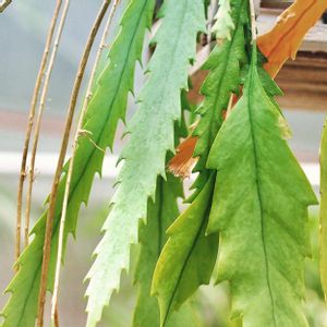 まだまだリプサリス。花柳です。こちらは割とメジャーな方。リプサリスは大きく細長いものと幅広いものがありますが、こちらはその幅広タイプの中で、ギザギザの葉っぱが特徴的な品種。……どう見てもサボテンには見えない(・ω・) https://pukubook.jp/detail/Rhipsalis_houlletiana #リプサリス #花柳 #リプサリス花柳 #Rhipsalis #Rhipsalishoulletiana #多肉 #多肉植物 #多肉図鑑 #succulents #pukubook