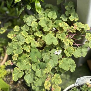 斑入りペラルゴニウムタビー お花が咲きました♡ 花友さんの投稿で見てた通り、か…可愛い╰(*´︶`*)╯♡ さび猫模様の葉っぱがビョンビョン広がって、そこに白い小さなお花。ハンギングにしても素敵よね!株分しよかな🤭