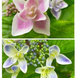 水曜日は水色 庭の ①ガクアジサイ コンペイトウ ②ダルマノリウツギ 良い色になって来ました