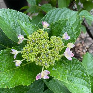 時期はずれの花芽、2つ目見つけました😊 少し前に見つけた子は右上、2つ目は左下。 7月に2回目のアジサイシーズンが来るようです💠