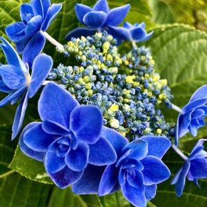 こんにちは😃 今日雨が降る前に撮りました🤗💙💙💙 アジサイがまた咲き始めましたヾ(๑╹◡╹)ノ" 青いガクアジサイ コンペイトウと言う紫陽花です😍 🏷 青い紫陽花マニア ブルーがとっても綺麗です♪(๑ᴖ◡ᴖ๑)♪ 今まで孫二人と一緒でした😍 やっぱり可愛いです😍❤️😍 肥料 ピンク色の花を咲かせたいときは、 骨粉や魚粉の混ざった油かすを施します。 青色の花を咲かせたいときは、 骨粉などが混ざらない固形の発酵油かすを施します。 肥料は、12月~2月上旬に寒肥を6号鉢で20g、数回に分けて施します。 花が咲き終わったら剪定を行った後に追肥を寒肥よりも控えめに施します。 ・水やり 鉢の土をよく観察し、 乾いたら鉢底から流れ出るほどたっぷりの水を与えます。 受け皿には水をためないようにします。 ・剪定 花が咲き終わったら剪定を行います。 花の2節下を剪定ばさみで切り取ります。 花後の剪定は、遅くても7月下旬までに行います。 剪定が遅くなると、次の年に花を咲かせることができなくなります。