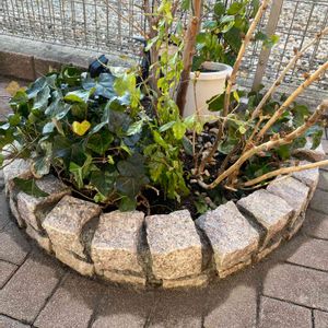 おはようございます☀️ 土が流れるのでずっと高さを出したかった花壇、とうとうピンコロ石とモルタルで1段施行しちゃいました😆 シロウトなので出来栄えはご愛嬌ですが、やっと実現したのでヨシとします💕