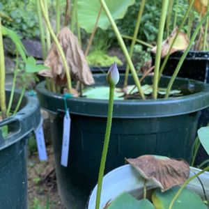 サギソウの茎が倒れるのは根張りが悪いのかなぁ❓😅茶碗蓮の小舞妃の蕾みのようす😀こぼれ種のホーリーバジル、雑草化してきてます😅熱帯スイレンのブルズアイ😀キングオブサイアムは今日はおやすみです💦カールくん🐕今朝またお尻が汚れてたけど、もうシャンプーしなくてもいいかな😅