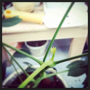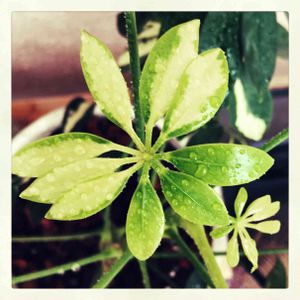 シュフレラ レナータ ジェニーネの愛らしい斑入の葉っぱが綺麗♡ 金魚の尾ビレみたいにひらひら〜〜