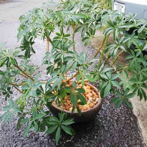 こんばんは😃🌃 今日も1日暑かったですね❗😖💦 店の水やりで、こっちが水をもらいたいぐらい…。😅 うちのシュフレラさん。 暑さ、寒さも関係なく、元気にしてらっしやいます。 逞しいです。😆