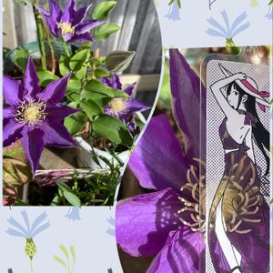 黄砂と聞いて🎼黄砂に吹かれて〜 口ずさみ🎶トレンド入りするなど💧 イメージが⤵︎ とてもいい曲なんですけどね🥰 素敵に咲いた紫色のクレマチスさん💜 勝手に歌のイメージと合っているかなぁと ももこさんを纏わせてのコラージュ💕 みなさんも黄砂には気をつけて お過ごしください♪ 苗からいただいた様子を みどりのまとめに投稿しました❣️ 上手く更新されないみどりのまとめ🌱 何度も更新してしまって💦 実際はどうなんでしょうか😅 しつこくタイムラインに載っていましたら ごめんなさい🙇♀️