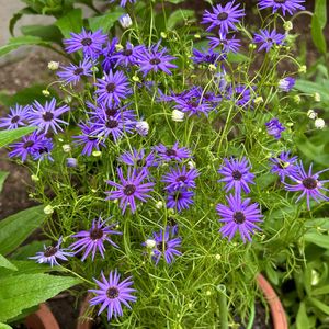 ブラキカム・ブルースターが満開です😆✨2、3株で咲き始めるまでヒョロヒョロだったのに、こんなに咲いてくれるなんて🥲色も綺麗だし花付き良すぎ…来年も絶対育てたいお花です✨