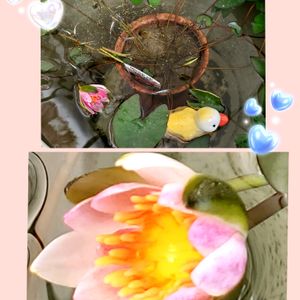 今晩は😄👋 火鉢にヒメスイレン入れたら1つ咲きました~🎵😍🎵 メダカ好きで育てている婿さんがメダカくれたので気持ち良さそうに泳いでいます😄✌️💕