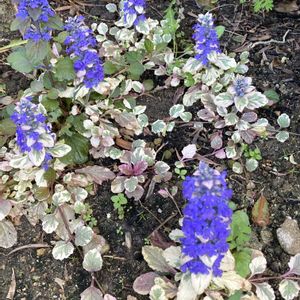 アシュガ バーガンディグロー 斑入りの葉が涼しげだと感じて、井戸のすぐ側に植えました。2年目で、やっと群生してくれました💜🤍🌱