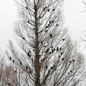 本の表紙みたいに 見えるような 木はメタセコイアかなぁ? なんの鳥かわからないけれど ムクドリと教えて頂きました😊🕊️♡