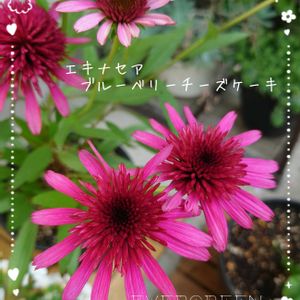 🌸エキナセア🌸 この夏、我が家に新入りしたエキナセアさん✨ ①パナマレッド❤️ 鮮やかなレッド 中心は渋いレッド ②ブルーベリーチーズケーキ 🫐🧀何て美味しそうなネーミング やっと一輪咲きました💕 もっと咲いてほしいなぁ ③バタフライキッス 八重咲き コンパクトサイズなのがいいわ💕 ほとんど手のかからない夏に強いエキナセアさん 種類多いですね この夏はエキナセアに注目しています❣️