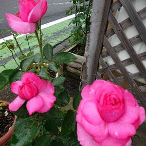 我が家にお迎えして初めて開花したイブピアッチェ様❤️ …でも濃いピンクや赤のバラがスマホカメラだと全然上手く取れません😅 色々研究してみます‼️ 昔使ってた一眼レフで撮ってみようかなぁ🤔