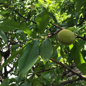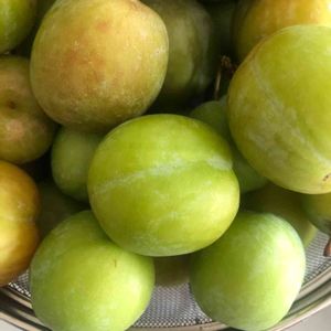 北海道🐎 すもも? 初めて、摘果に挑戦 真ん中の大きな実は、奇形なのでしょうか? 残すべきか、否か?
