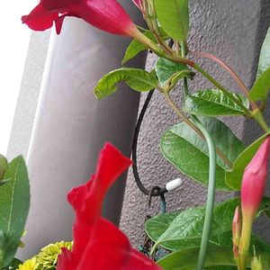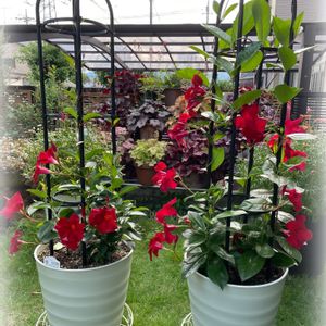 クライミングサンパラソルレッド 2輪目が咲きました❤️ ツルもすくすく伸びてます🌿 ܸ 🏷サントリークライミングサンパラソル 定点観測モニター