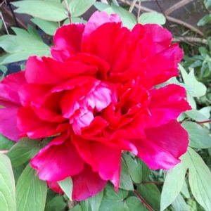 真っ赤なシャクヤク 咲いた! 初めて… ピンクも咲くといいなぁ🎵