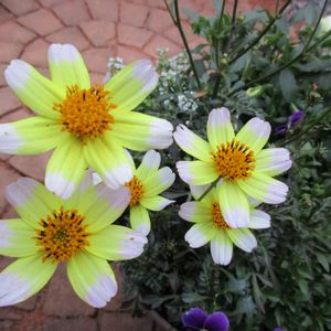 黄色とピンクのウインターコスモス。 やっぱり、花柄はまめに摘んであげたほうが花つきはよいような気がする。。