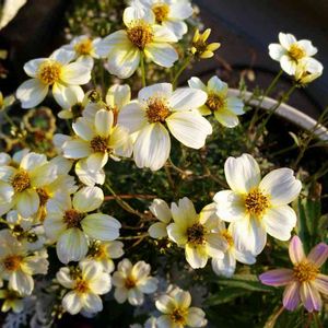 ウィンターコスモス月姫 夏越しのため日陰に置いておいたら すごく徒長してだらしなくなってしまったので切り戻して日向に戻したら なんとか可愛らしいお花がつきました!