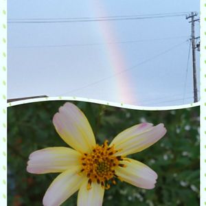 ようやく咲きました(^^)/ ウィンターコスモス 月姫👸🌸 お花、小さいのねぇ… 今朝出ていた虹とご一緒に🌈