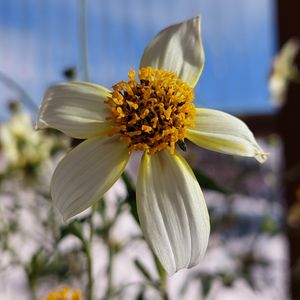 ウィンターコスモス 🌸✨「月姫」 とっくに開花期は終わってたと思ってたウィンターコスモス🌙月姫ちゃん 最近の陽気に誘われたのか1つ咲いてました✨ 2㎝ほどの小っちゃい子ですが😅 ウィンターコスモス🌸は、 普通のコスモスやチョコレートコスモスとかと咲き方がちょっと違います☝️ ・普通のコスモスやチョコレートコスモスは「キク科コスモス属」なのに対し、 ・ウィンターコスモスは「キク科センダングサ属」だからなのでしょうか💡 🌸普通のコスモスは、 周囲の花弁部分「舌状花」が、蕾のうちに(閉じて丸まった状態のうちに)、ちゃんと育ってて、 開花するときは、花弁が綻ぶように開いていきますが、 🌸ウィンターコスモスは、 センダングサ属というだけあって、 コシロノセンダングサのような感じで、 花芯部分の黄色い「筒芯花」の周囲に、 小っちゃい「舌状花」がチョビチョビっとくっ付いただけのような姿から開花が始まります✨ 開花が進むにつれ、 花弁部分の「舌状花」が成長して大きく育って広がる感じなのです🌸✨ 最初見たときは、 栄養不足か何かで、開花に失敗したのかと思ってましたが、 開花の仕方が違うようなのですね~😌 なので、 ここまで小さな花だと、余計に失敗感というか残念感というか、 「いやぁ、コレは中途半端で全部は咲かないだろう」と思って様子を見てたのですが、 ちゃんと花弁まで育って花らしい形に開いてくれました😆✨ 次の花シーズンにもまた沢山咲いてくれますように(*´ω`*)💕