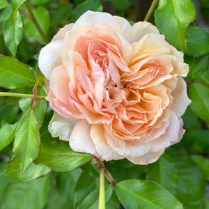 今日のシャンパーニュの様子 土曜日に土砂降りにあってしまい 少し花形が乱れてしまった様子🧐 思っていた中輪カップ咲きとは少し違い花もデカい‧˚₊*̥(∗︎*⁰͈꒨⁰͈)‼️ しかし内側は素敵なシャンパンのような薄いアプリコット 香りは鼻がまだイマイチの私でも分かるくらい、フレッシュなよい香り✨ まだたくさん蕾があるので 他の花の開花期待します◡̈︎*♚︎‧*˚✩︎‧₊˚