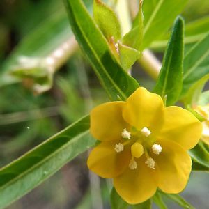 アメリカキンゴジカ(アメリカ金午時花)アオイ科キンゴジカ属 カロライナツユクサを見に行った時、黄色いお花が開きかけてました。(9時くらい) 調べたら昼前後の数時間しか咲かないとのこと。 花友さんの1週間くらい前の投稿では、10時半に見たとのこと。 なので9時40分頃行きましたが咲いてませんでした。 他のお花を見てまわり、11時半まで待ちましたが、開きませんでした。 残念です。 3度目の正直で昨日9時くらいに行ったら、お花が開きかけてました。 他の場所にも咲いてのでよ〜く探したらひとつだけ咲いてるお花がありました。 やっと見ることができました。 想像通り綺麗なお花でした。 1⃣   9時10分、ひとつだけ咲いてるお花  10月6日 2⃣   別の角度から見たお花 3⃣   別の所でもひとつ咲きかけてました。          4⃣   蕾だと思っていたのは若い果実のようでした。10月5日 5⃣   こらから咲く蕾がたくさん並んでました。 ネットに↓こんなことが書いてありました。 キンゴジカは、花が黄色く、午(うま)の刻、つまり昼十一時から十三時の間に花を咲かせるものの意であるが、アメリカキンゴジカの開花時間はキンゴジカより明らかに早いので注意が必要。正午あたりに覗いてみても花はとっくに閉じてしまったあとである。開花は(真夏の晴天日で)八時から九時あたりか。天候などにより左右され、時間は日ごとにずれる可能性も。また花によって開花時刻は少々ばらけることもあり。一つの花がきれいに咲いているのはわずか一時間程度である。 開花してるお花を見るのはかなり難しいようです。