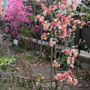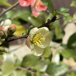 ボケの花も咲きはじめていました✨ 真っ赤なボケも素敵だけれど この花色が私は好きです💖