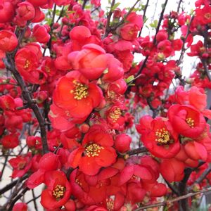 木瓜 庭のボケの花も 満開です❤️❤️❤️🥰💕
