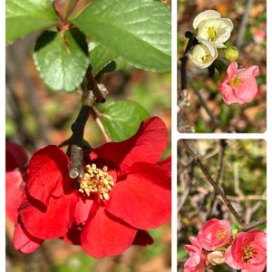 一本の木から 赤、白、ピンクと 混じって咲いていました😊 寒ボケにはちょっと早いかな? やはり陽気に誘われた狂い咲き?