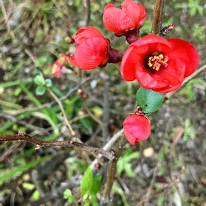 緋色のボケの花が 色鮮やかに咲いていました🥰 寒木瓜ですね 厳しい寒さに耐え その先に早春を感じさせる 春を放つ花‥ 放春花とも言われます 待ちましょ春を☺️