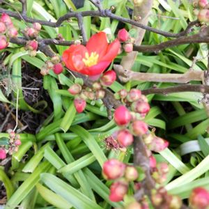 今日も暖かな気温で過ごしやすく楽ですね 木瓜の花が咲いてます 春にまた一歩ですね