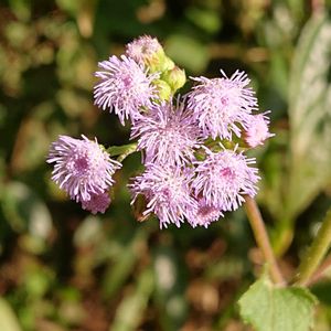 カッコウアザミ 園芸種はアゲラタムの名前 5~6mmの小さなお花が風にユラユラ ①②③同じ場所でも色は様々 ④花後 毎年咲くサクラタデのじゃまにならない距離を保って咲いてます。 外来種なので抜かないといけないのかなと思いながら………😂 カッコウアザミ属キク科 熱帯アメリカからの外来種