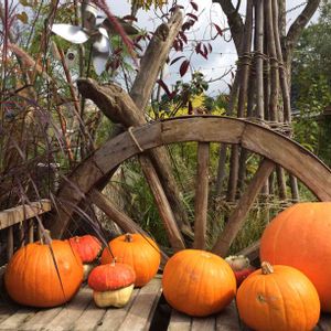 カボチャをオブジェに見立てたお庭でした(⌒▽⌒)