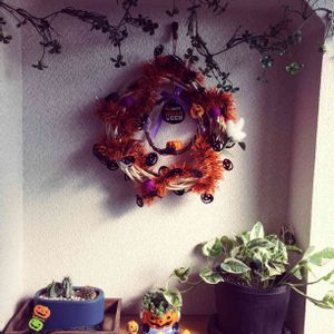 ハロウィンの壁飾りを作りました、ほどんと100均で揃ってた物です。楽しい〜