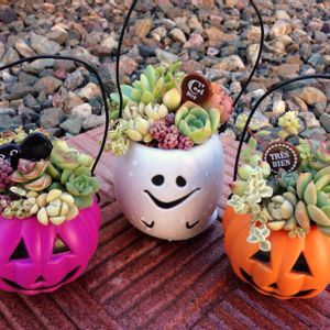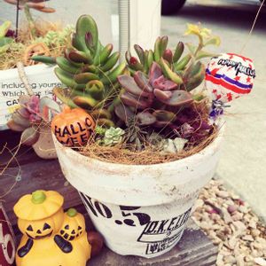 100円ショップで買ったハロウィンの入れ物にポトスをポトッす♪中は100円ショップの藻で簡単♪