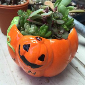 ハロウィンかぼちゃにリプサリスを乗せてみました 一応、スカスカなヘアー(⌒-⌒; )