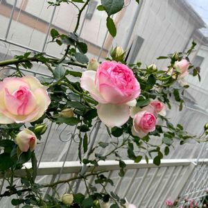 我が家のピエール・ドゥ・ロンサール ガレージの屋根があるので、花が遅いんじゃ。 亡くなった義母の庭は美しく咲いとるそうな。