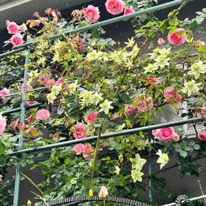 亡き義母の家に立ち寄って、写真撮影ついでに誘引し直してきました。 ピエールさんはカミキリムシの食害から復活中。まだ今年は往年の勢いが無い😰💦💦