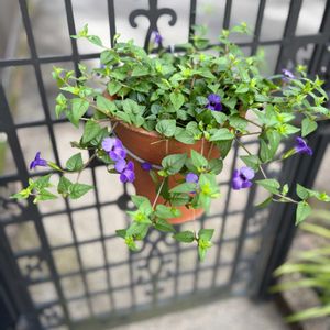 トレニアをカットして花瓶に刺しておくと、キレイな花を咲かせてくれます。(ついでに発根待ちも😏) 涼しい部屋で眺められて贅沢な 気分になれます💜 ハゴロモジャスミンも、長持ちして便利😆 2️⃣ハゴロモジャスミンとワイヤープランツの寄せ植え。 わしゃわしゃです😅
